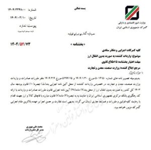 در این بخشنامه آمده است: بدینوسیله تصویر نامههای شماره 5016150 مورخ 1404/1/30 و 5299115 مورخ 1404/3/4 دفتر مقررات صادرات و واردات وزارت صنعت، معدن و تجارت در خصوص واردات کشنده از محل آئین نامه اجرایی بند (ث) تبصره (10) قانون بودجه سال 1403 کل کشور به صورت بدون انتقال ارز از محل بند (9) ماده (38) آئین نامه اجرایی قانون مقررات صادرات و واردات با ارائه کد رهگیری بانک مرکزی جمهوری اسلامی ایران با عنایت به به تبصره (3) ماده (7) قانون مبارزه با قاچاق کالا و ارز جهت اقدام با رعایت کلیه قوانین و مقررات و ضوابط جاری ارسال میگردد.