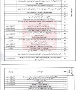 شامل صدور دسته چک، چکهای صیادی، چکهای تضمینشده، تایید شده، رمزدار و معرفینامه بانکی.