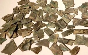در مجموع ۶۶ قطعه فلزی یافت شده که مربوط به عصر برنز متأخر بین سال‌های ۱۰۵۰ تا ۸۰۰ پیش از میلاد هستند. این قطعات شامل اشیایی مانند «چیپ»ها نیز می‌شوند؛ اجزایی فلزی که برای محافظت از نوک تیز سلاح‌هایی مثل شمشیر به کار می‌رفته‌اند.